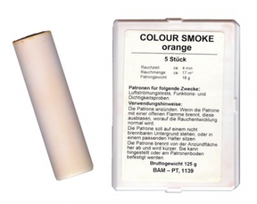 Lager tett røyk i opptil 4 minutter. Inneholder 5 patroner i hver pakke og levers i både hvit røyk og oransje røyk